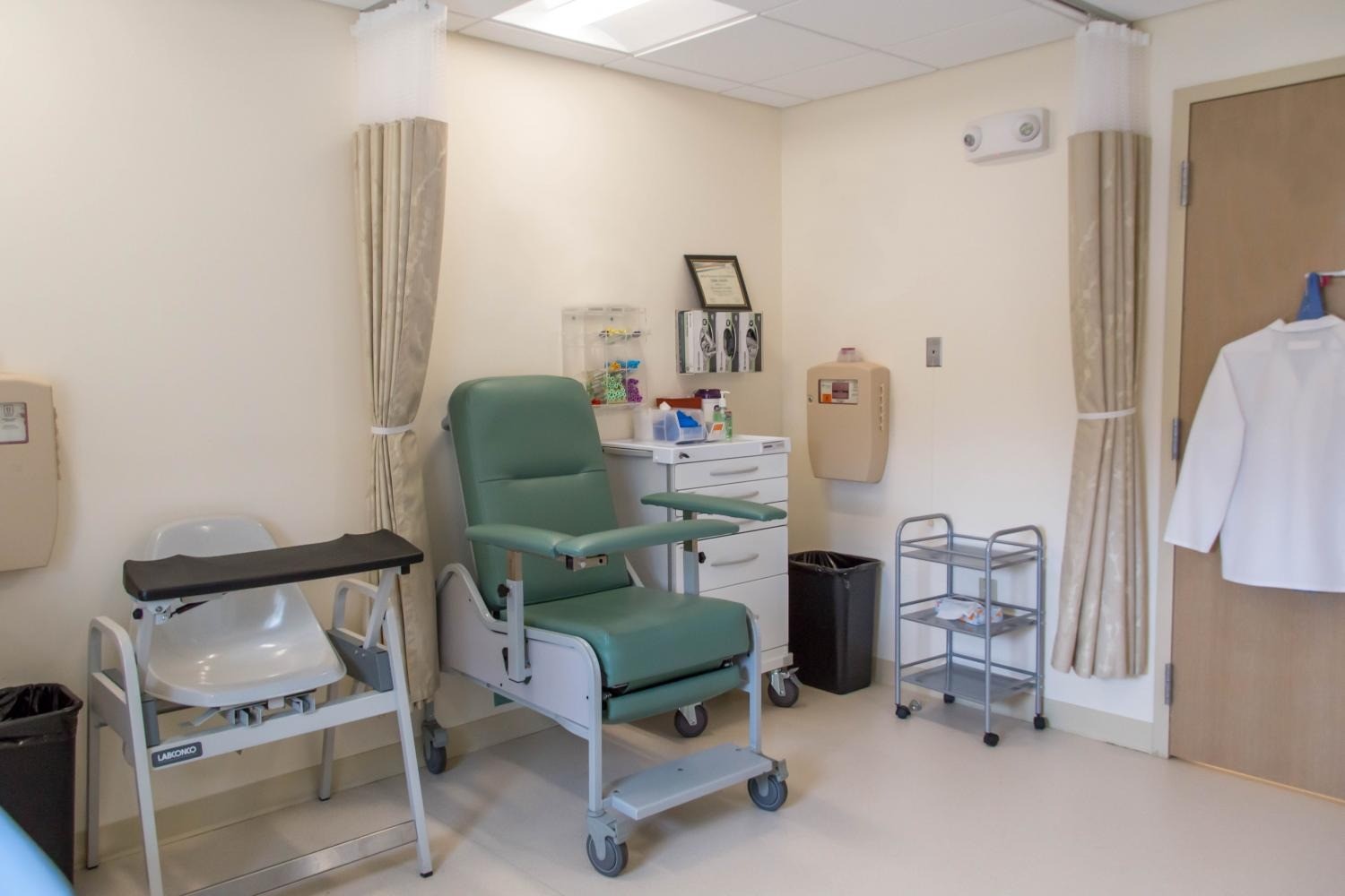 Vantage Builders completed the build-out of North Shore Physicians Group’s Rowley, MA office, at 414 Haverhill Street. The office offers primary and specialty care, as well as x-ray, mammography and bone density testing, for patients in Rowley and the surrounding communities. The 12,800-SF project was designed by architects Shepley Bulfinch, with a focus on creating an atmosphere that is both relaxing and inviting for patients and efficient for doctors, nurses and staff. Vantage built 20 exam rooms, an x-ray room with lead-lined walls and three offices with an open concept for NSPG staff. There is a consultation room and three conference rooms for larger discussions, as well as rooms for bone density, mammography, and phlebotomy testing.Vantage conducted significant systems work, including underground plumbing, installation of a complete HVAC system with ductwork, and fire protection sprinklers. New sheet vinyl flooring was installed and finish work included custom millwork, paint and decorative glass, all designed to reflect NSPG’s branding.