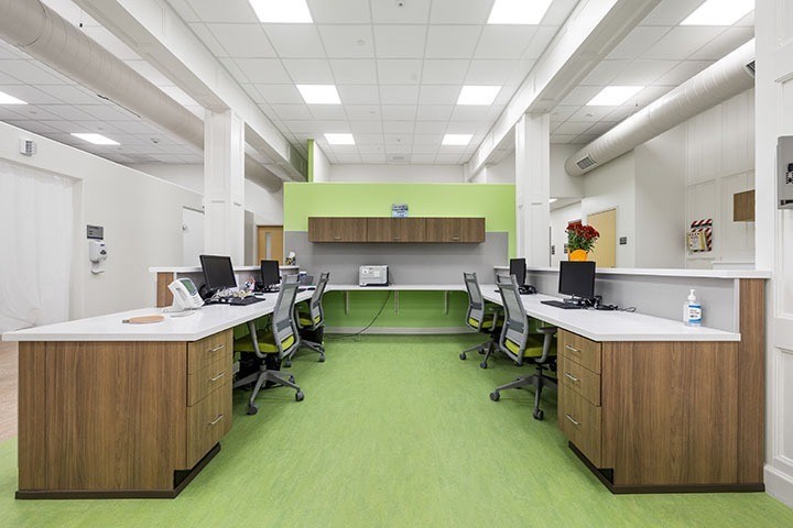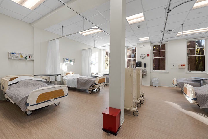 Middlesex Community College opened a state-of-the-art simulation and skills laboratory for students in its nursing associate degree and licensed practical nursing programs. Vantage was hired for the 7,345-SF buildout by MCC and NV5, which served as OPM. The training facility replicates a working, active hospital setting, and features two nursing command stations, 26 hospital beds, eight examination rooms, and cribs for pediatric training. The new nursing labs include simulation mannequins capable of registering pulse, blood pressure readings and even the delivery of an infant. The Vantage team installed all new framing, electrical power wiring, data cabling, plumbing, and fire protection as well as a new revamped HVAC system. The training center features all new flooring, custom millwork, lighting and ACT ceiling, and built two new bathrooms on the second floor. The team worked under a tight deadline, to help get the buildout complete in time for classes.