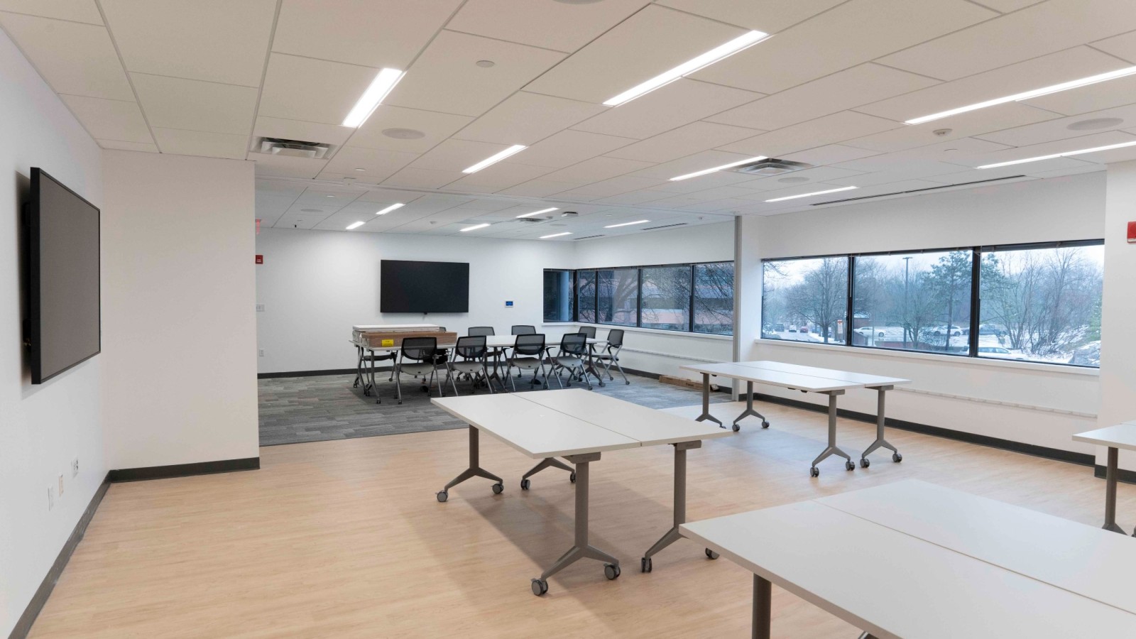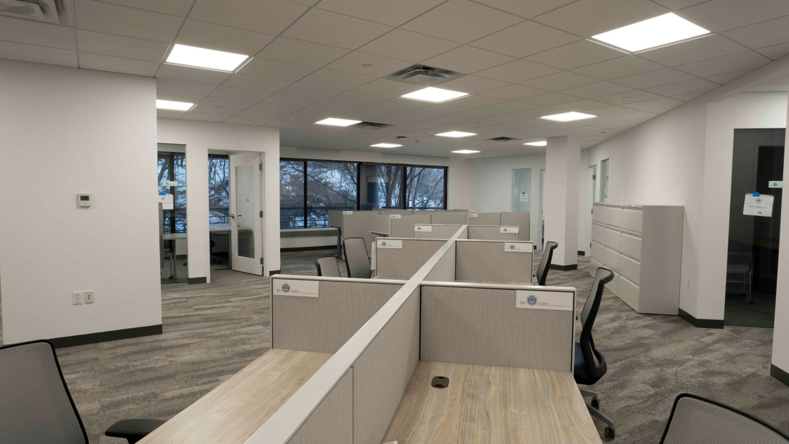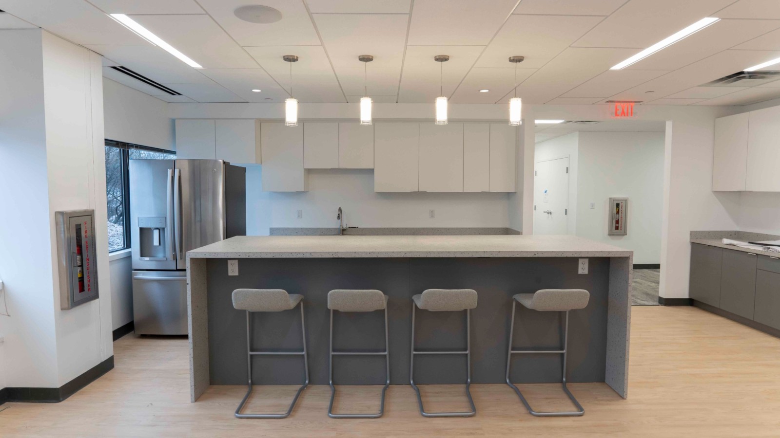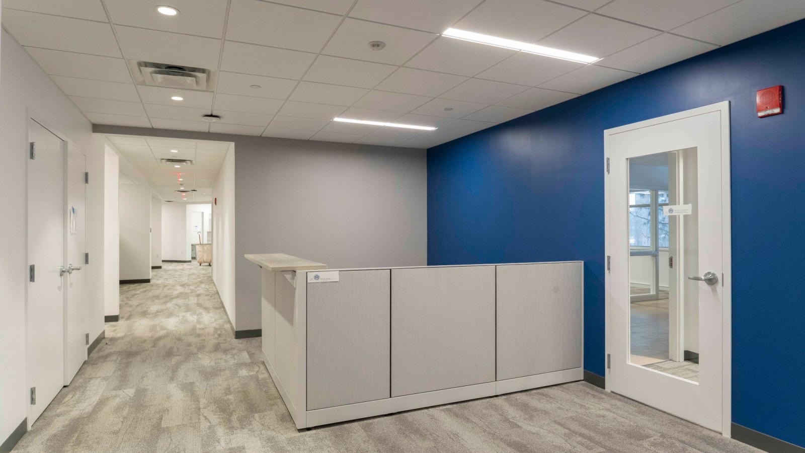 To create more space for its growing teams, Brandeis University enlisted Vantage Builders to create a new suite for its office for Institutional Advancement at 51 Sawyer Road near its main campus. The multi-floor renovation required close coordination and heavy logistical planning with not only the Brandeis team, but also the property manager at 51 Sawyer and the tenants occupying the adjacent space to ensure minimal disruptions. The Vantage team created a new layout with over 90 individual offices, several meeting rooms and breakout spaces with movable partitions. Vantage also updated the HVAC system from pneumatic controls to DDC controls requiring tight containment so that dust associated with the renovation did not affect the newly renovated, highly trafficked open air lobby adjacent to the suite. The space is highly functional and features a cohesive design flow to provide all user groups with the same experience when utilizing each area.