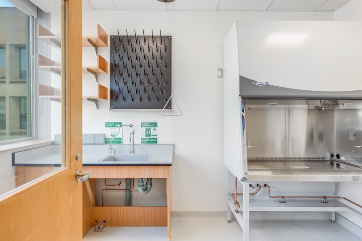 Massachusetts Institute of Technology hired Vantage Builders to work on two lab projects: the renovation of Galloway Lab and the build-out of Furst Lab, both in the Chemical Engineering Department. A critical concern during the project was that the labs are adjacent to occupied BL2 lab and office space, and Galloway Lab needed to be operational during construction. Vantage Builders coordinated closely with the university to ensure that any necessary shutdowns did not affect other user groups and the project team created an alternative egress to minimize disruption to end users. The 4,000-square-foot project included abatement and demolition work; new MEPs for CO2, nitrogen, and water; HVAC and electrical work; and installation of laboratory casework and bio-safety cabinets. Being involved early in the design phase allowed Vantage Builders to work with Linea 5 Architects to assist in drawing, constructability reviews and schedule development.